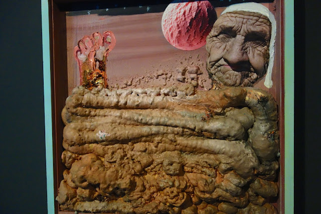 Übrigens lohnt sich beim Besuch der Kunsthalle ein Seitenblick in den kleinen 45-Kbm-Ausstellungsraum neben der Kasse. Hier zeigt Kasia Fudakowski noch bis 11. November die Ausstellung "Bad Basket", die sich allerdings erst erschließt, wenn man die schweren Metall-Schwingtüren aufgedrückt hat. Die Türen tragen den Auszug einer Kurzgeschichte von B. Traven. Also - der kleine Raum ist - bei stets freim Eintritt - ebenfalls immer für eine Überraschung gut.